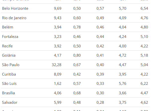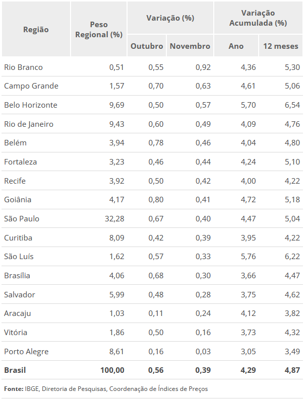 Quanto aos índices regionais, Rio Branco registrou a maior variação (0,89%), por